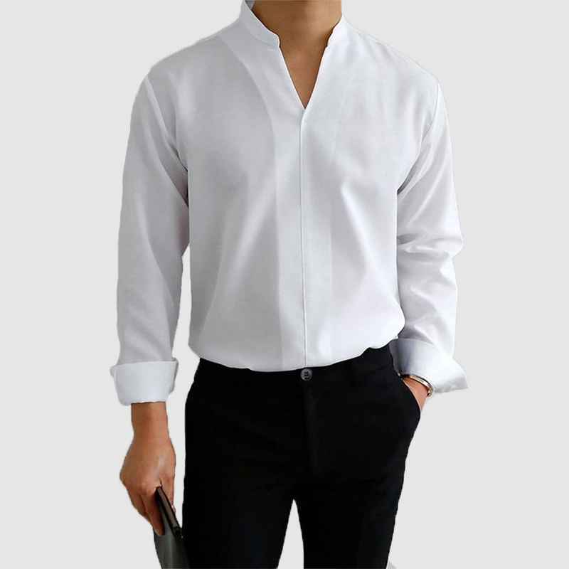 Men's casual shirt solid color hot sleeve long sleeve standing collar men's shirt