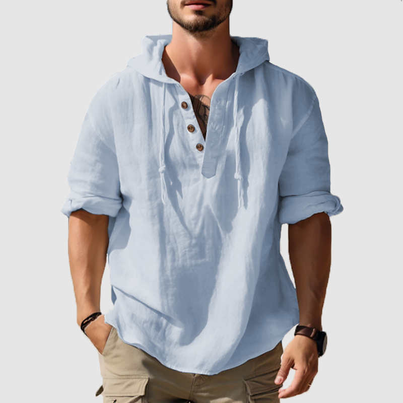 Men's hooded shirt solid color sleeve long sleeve shirt