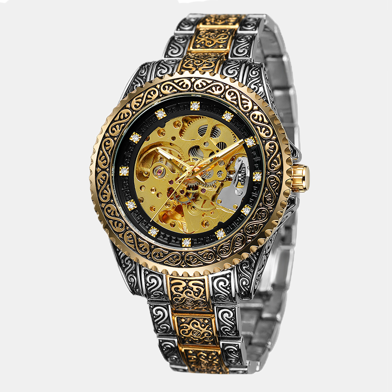 Men's fashion and leisure hollow-out retro carved automatic mechanical watch