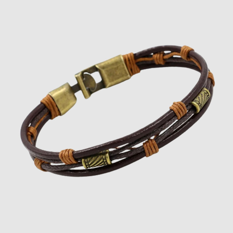 Men's woven leather rope bracelet with simple wax thread buckle bracelet