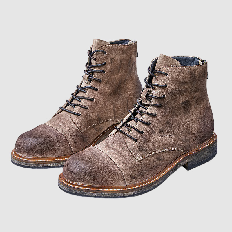 Men's fall and winter mid-top gray round toe solid color men's boots