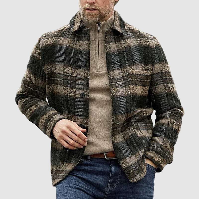Mens Plaid Thick Woolen Casual Jacket