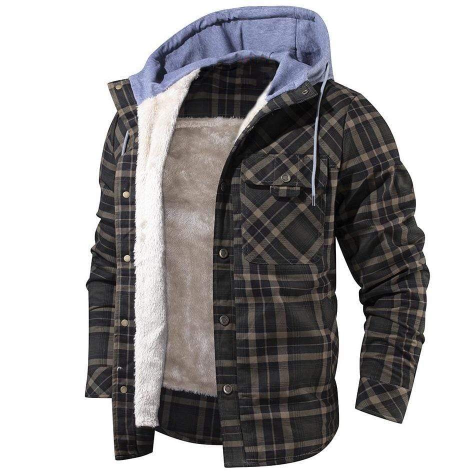 Men's Autumn & Winter Outdoor Casual Checked Hooded Jacket