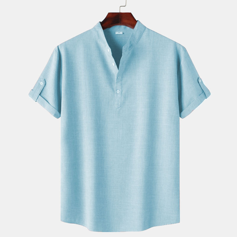 Men's round neck linen short sleeve shirt