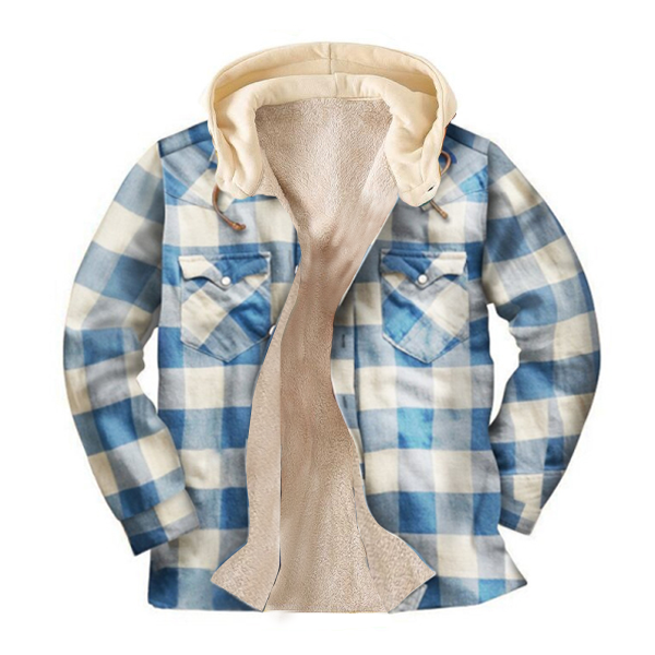 Mens Plaid Thick Plush Casual Jacket