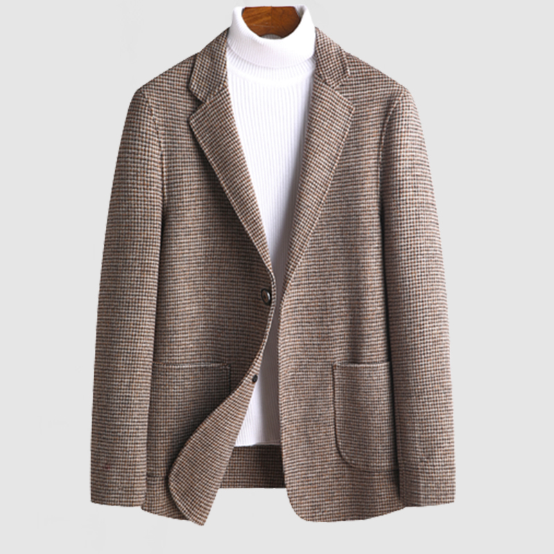 Men's Gentleman Lapel Button Wool Plaid Blazer