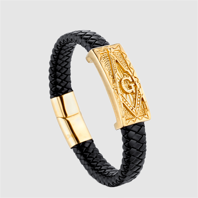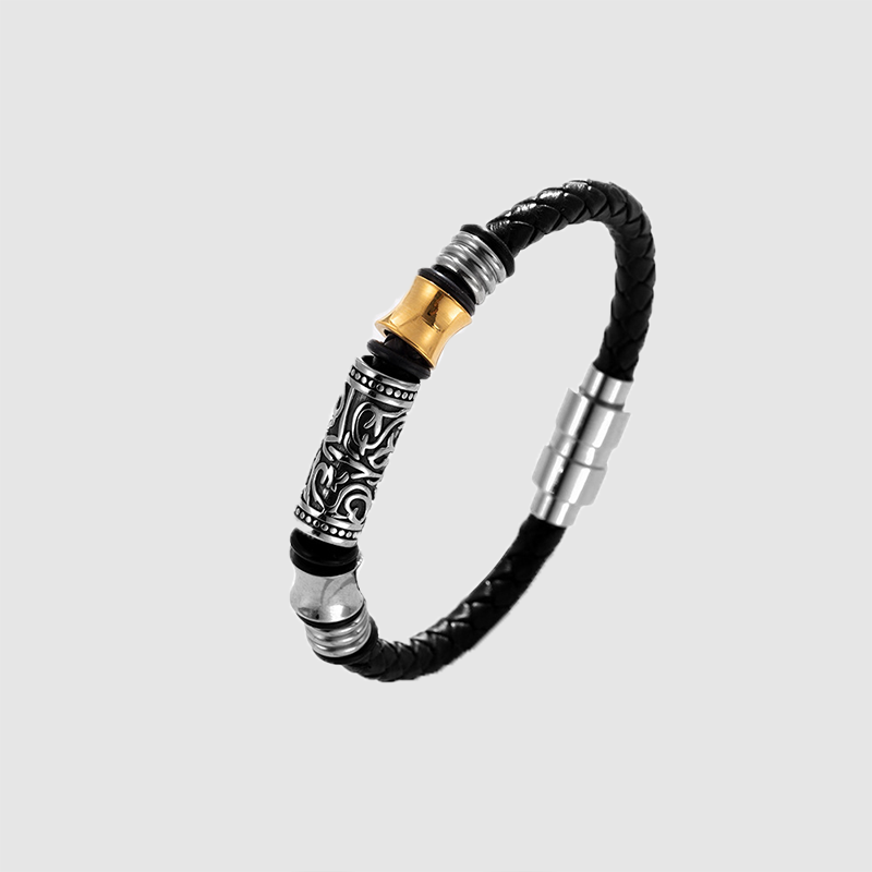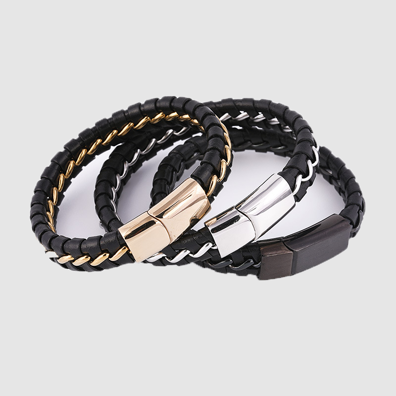 Men's leather bracelet versatile hand ring titanium steel leather woven bracelet