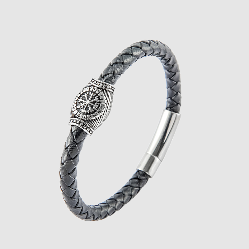 Men's stainless steel leather rope woven bracelet