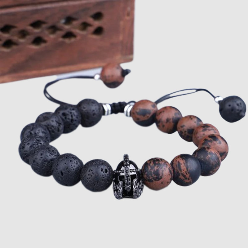 Men's Zircon Bracelet Handwoven Gold Obsidian Handpiece