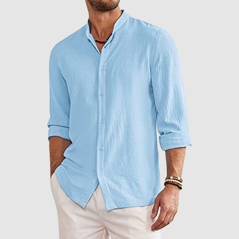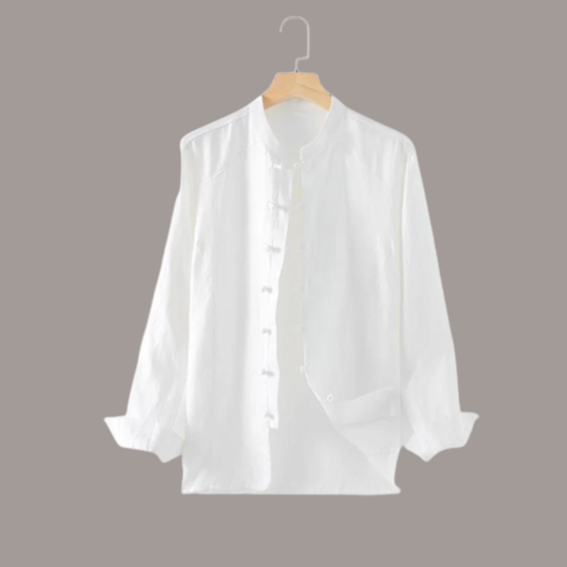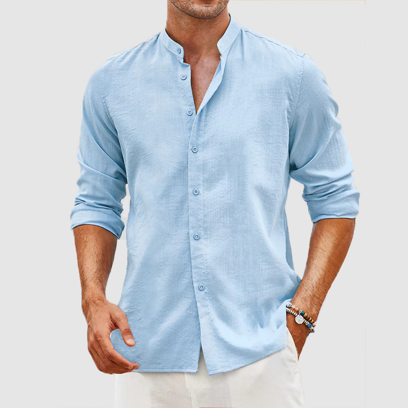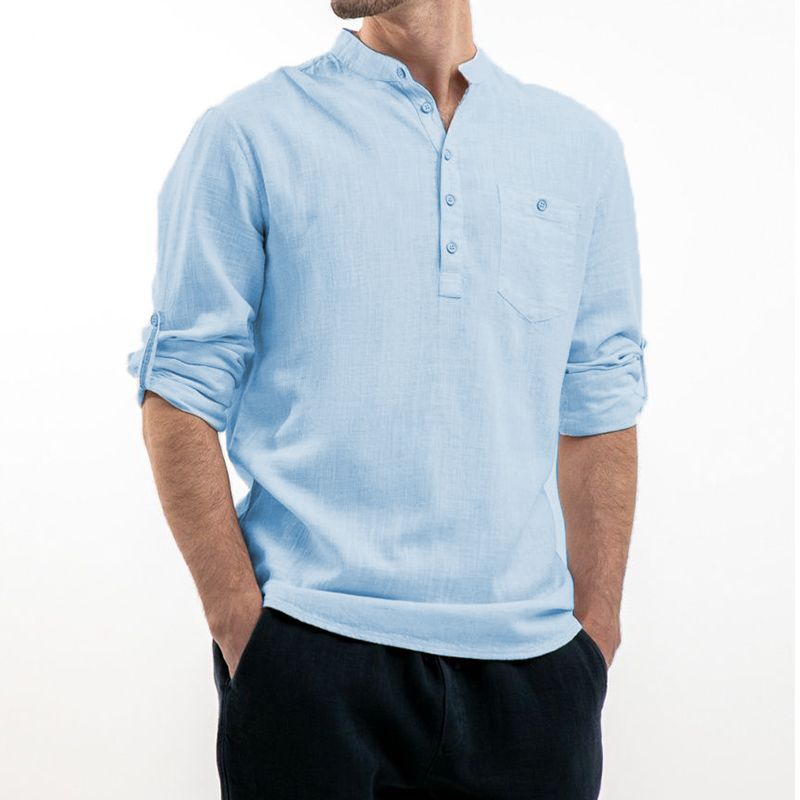 Men's gentleman with cotton linen stand-up collar shirt