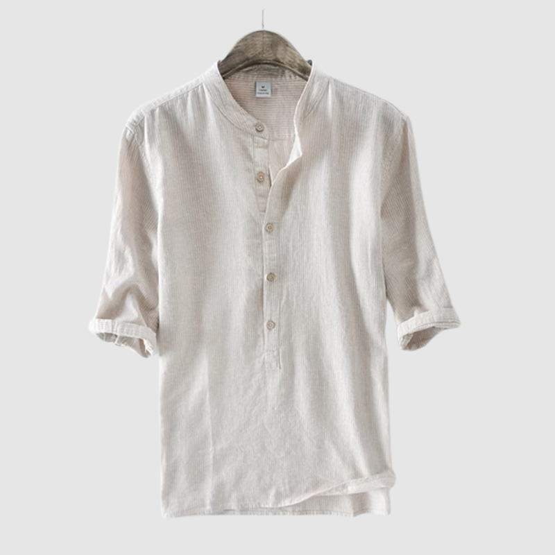 Gentleman's Standing Collar Button Down Cotton Linen Shirt