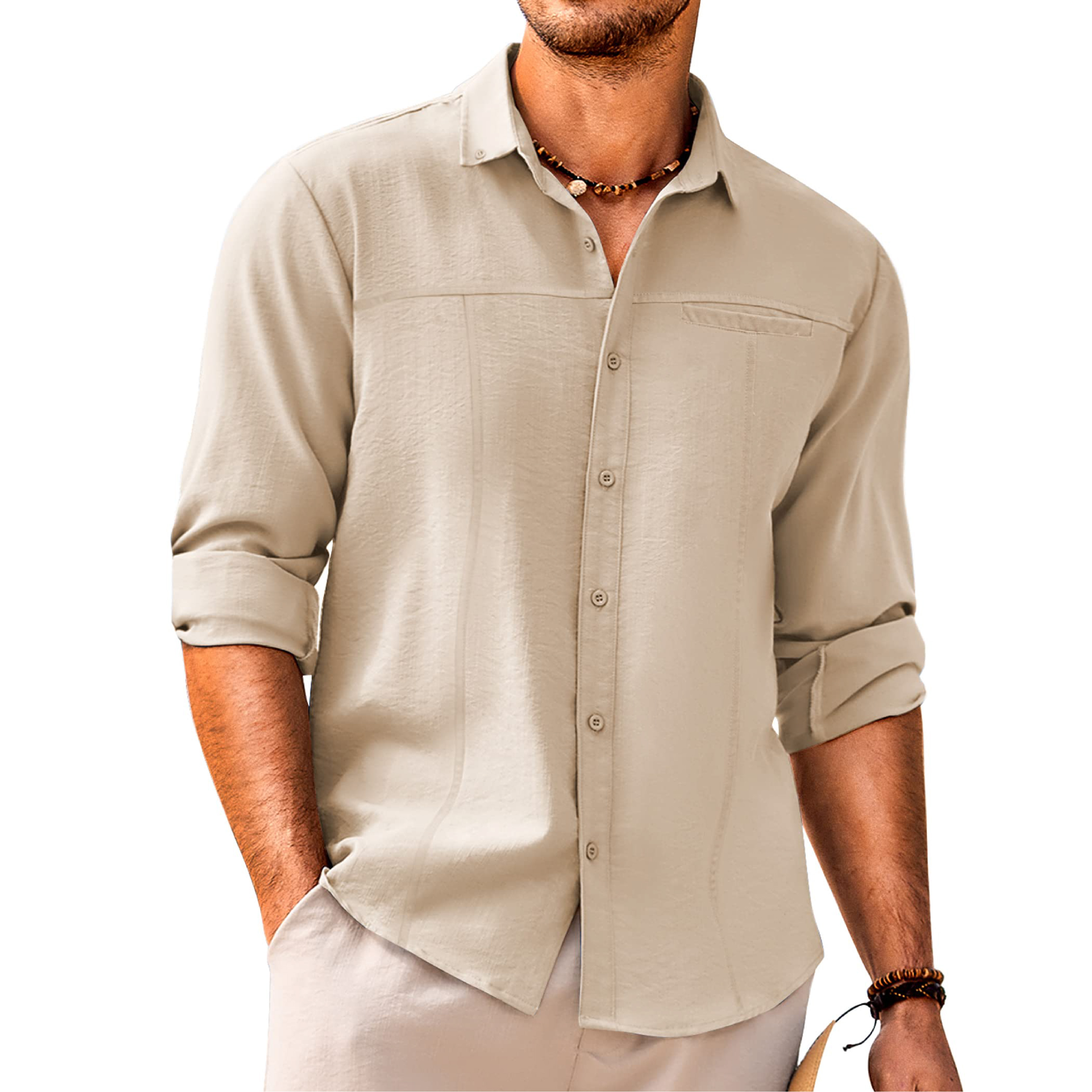 Men's Casual Button Down Linen Shirt With Pocket