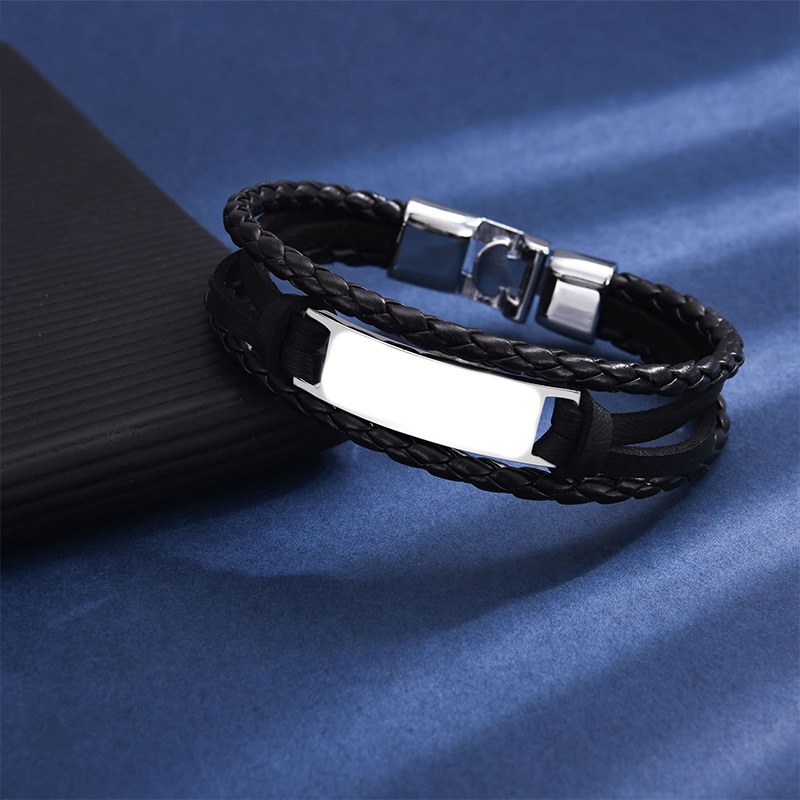 Adjustable Leather Stainless Steel Bracelet