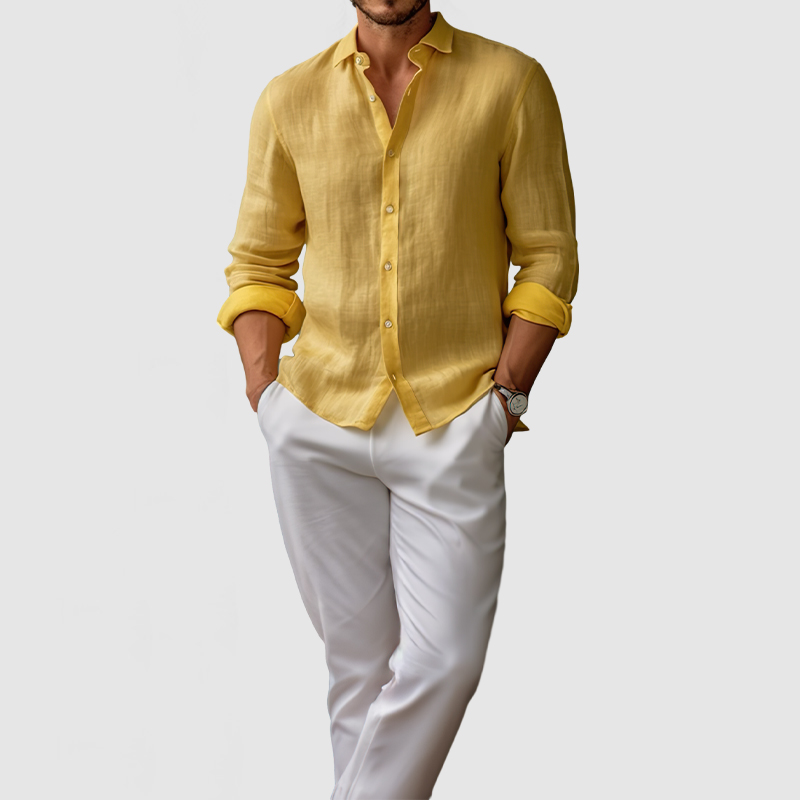 Gentleman Daily Basic Long Sleeve Cotton Linen Shirt