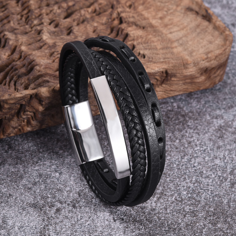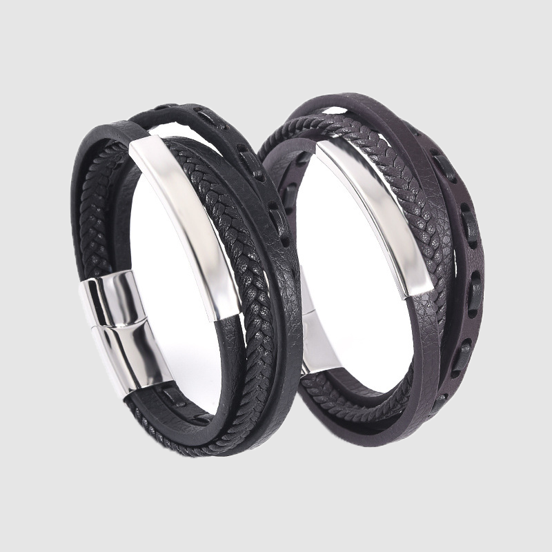 Men belt woven titanium steel bracelet stainless steel leather bracelet