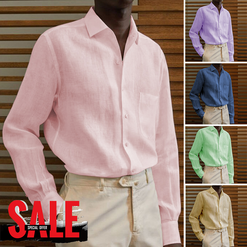 Men's classic casual cotton linen solid color shirt