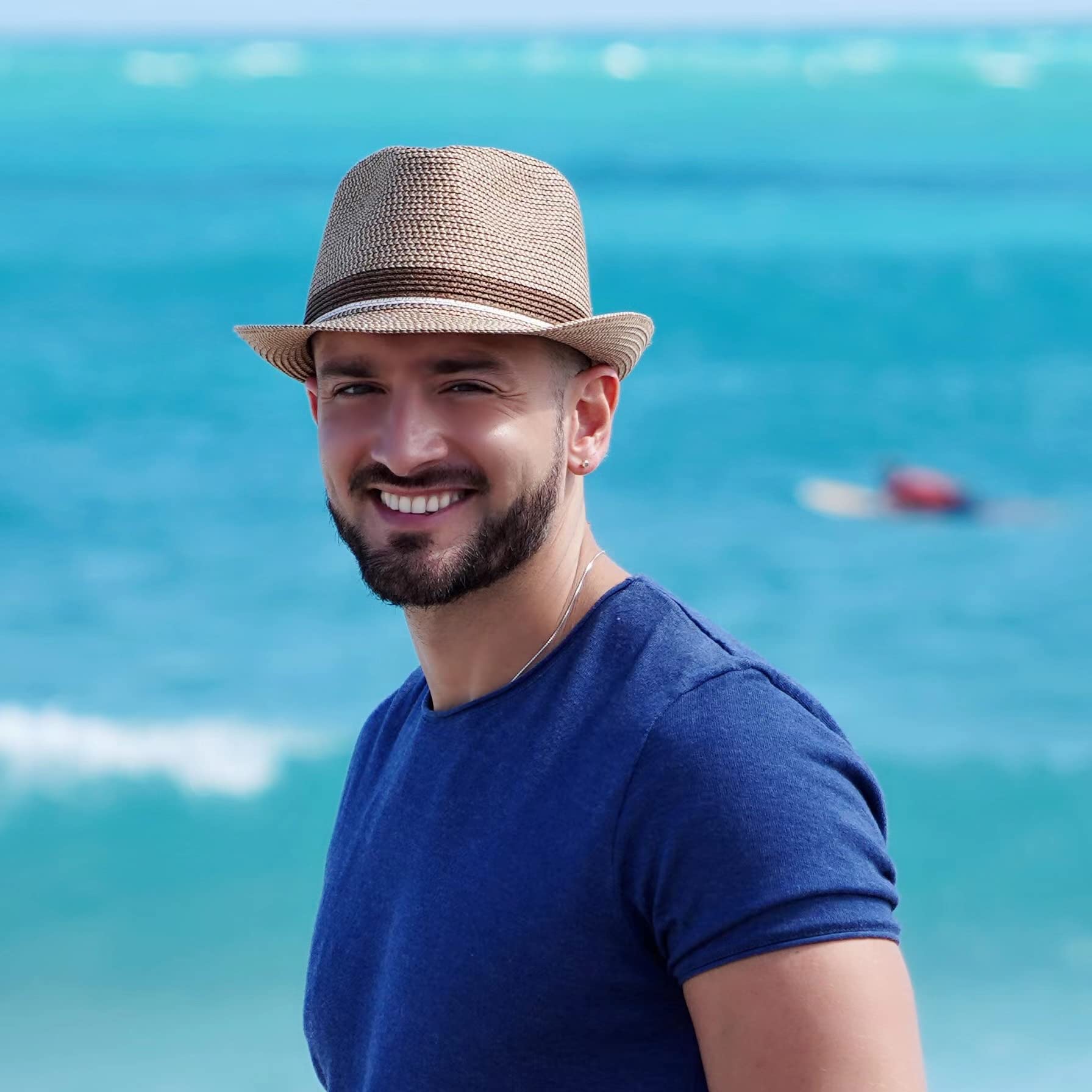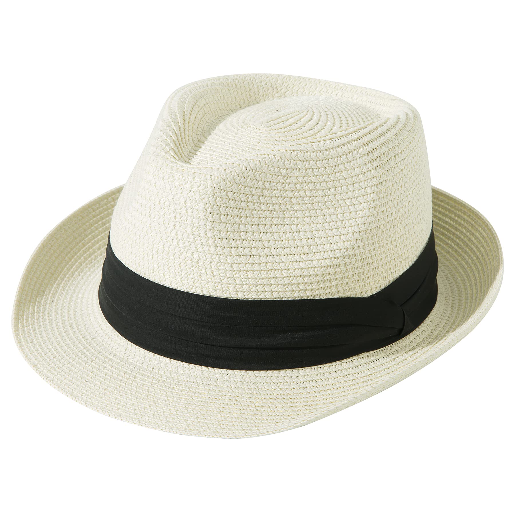 Men Short Brim Straw Hat Panama Fedora Hat Summer Beach Sun Trilby Hat Packable Roll Up Hat