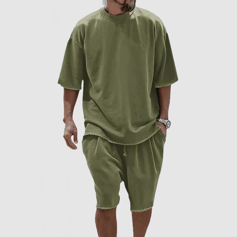 Men's Basic Casual Cotton Round Neck Shorts Two Piece Set