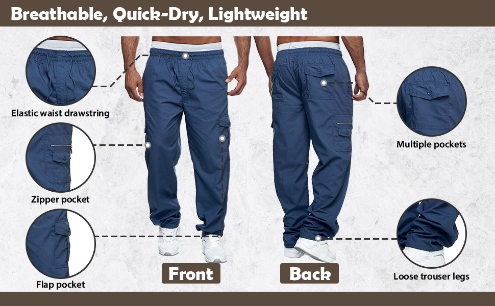 • Style:Men's Cargo Pants Relaxed Fit Sweatpants Jogger Sport Pants Drawstring Outdoor Trousers with Pockets