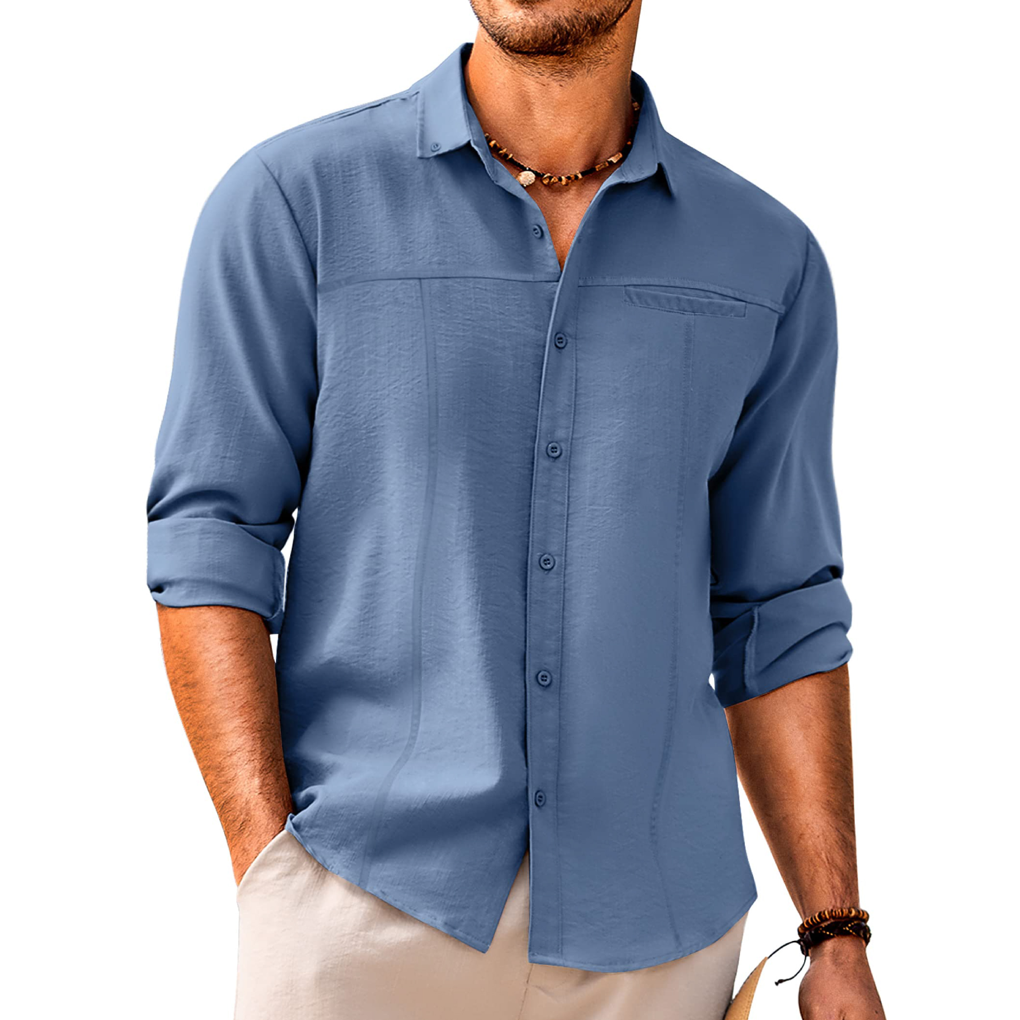 Men's Casual Button Down Linen Shirt With Pocket