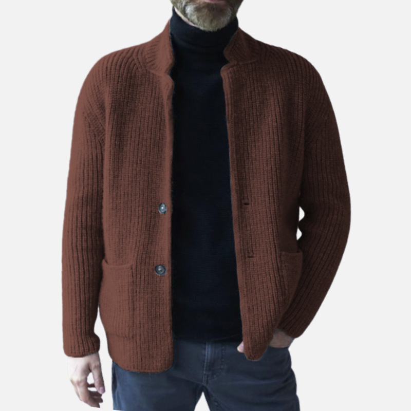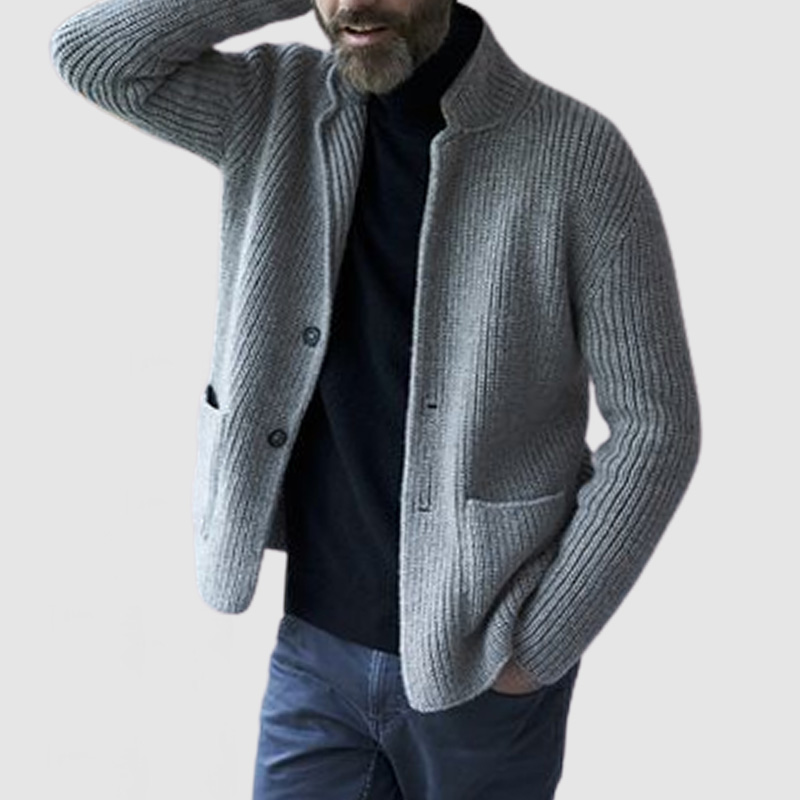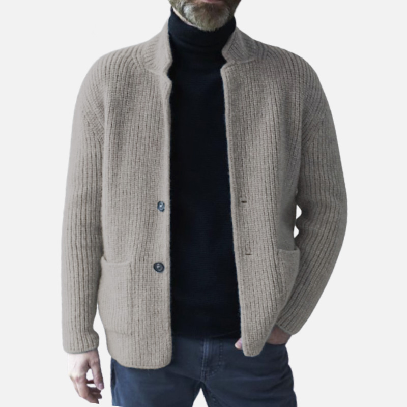Men's Casual Lapel Long Sleeve Knit Jacket