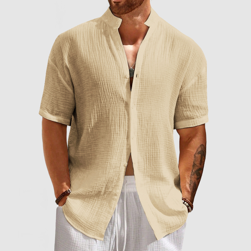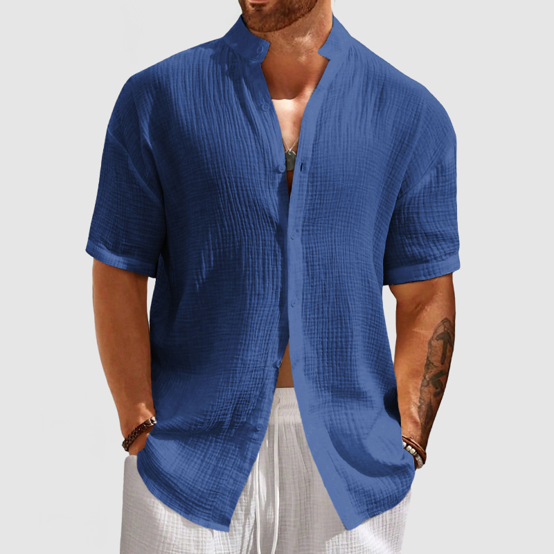 This shirt has a business-casual style element and is made from Cotton, which is extremely breathable. This shirt is crafted from a cotton fabric with the now popular bubble crinkle textured design for a stylish and unique look. The simple collar is designed just right, and that's where you'll experience the quality the most! Whether for outdoor sports, leisure activities or social gatherings, this shirt will keep you elegant and gentlemanly for a long time.