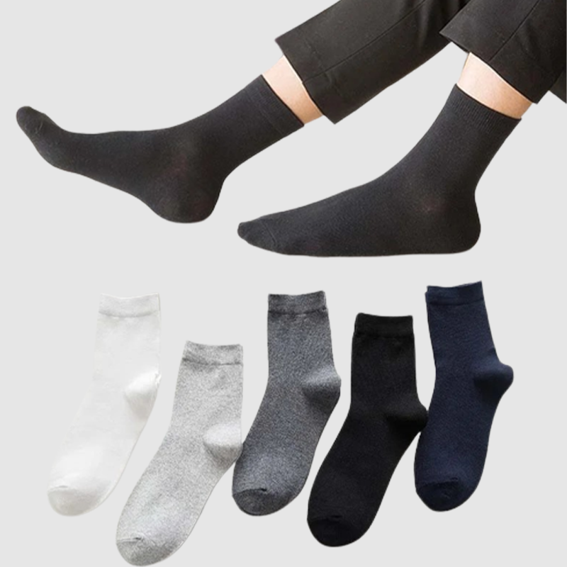 Men's Cotton Casual Medium Tube Socks Business Solid Color, Thin Men's Socks
