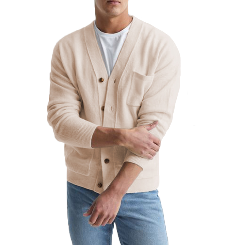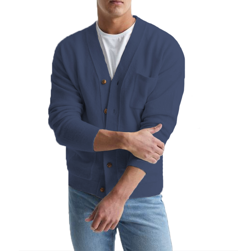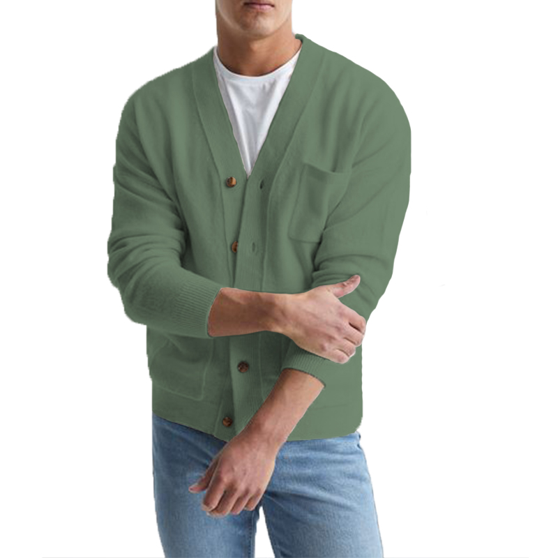 Men's Cotton V-Neck Sweater Knitted Cardigan Coat