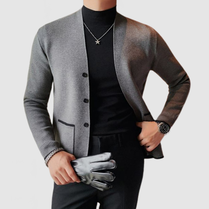 Men's Elegant V-Neck Contrasting Knitted Cardigan NEW