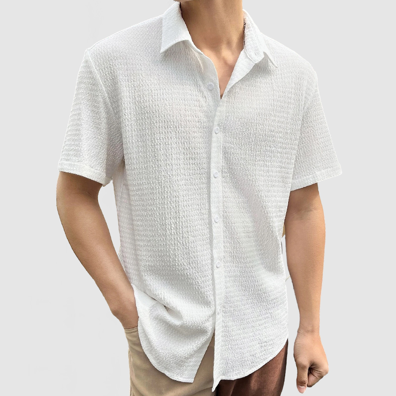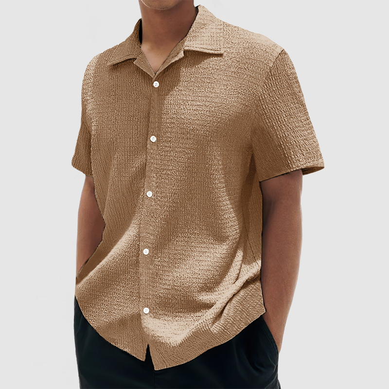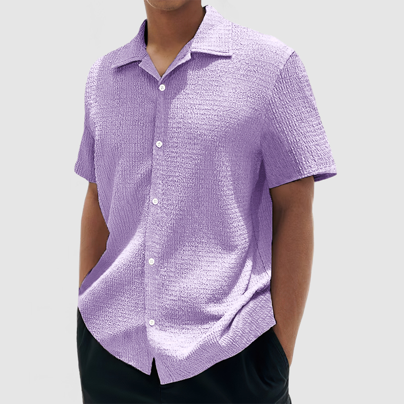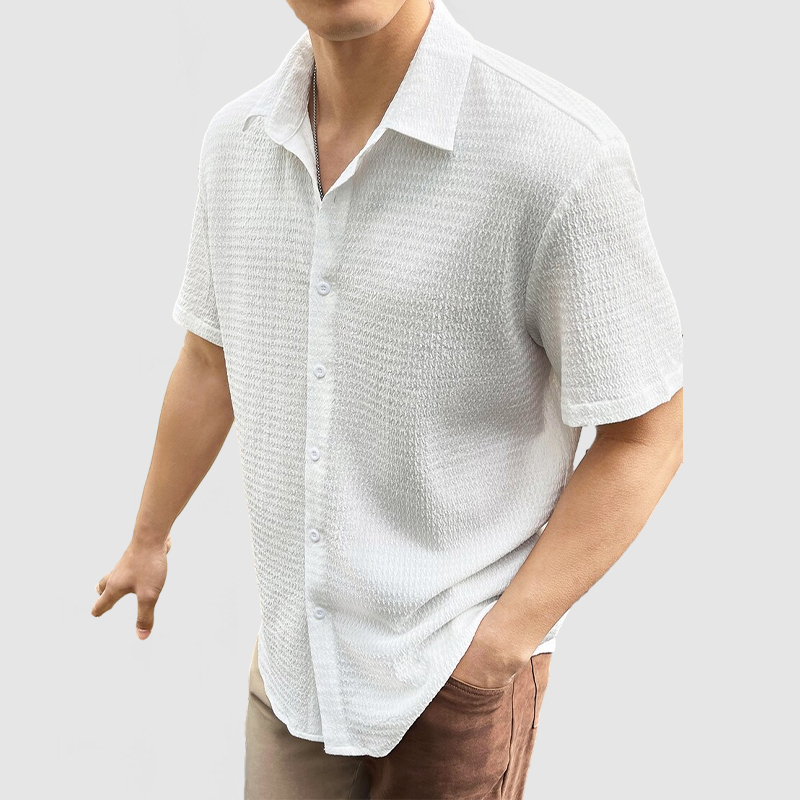 Men's Everyday Casual Cotton Textured Short Sleeve Shirt