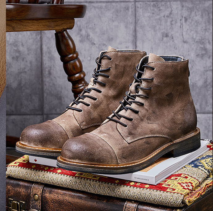 Men's fall and winter mid-top gray round toe solid color men's boots
