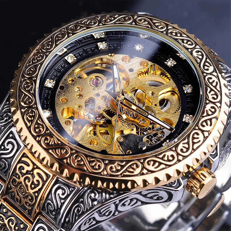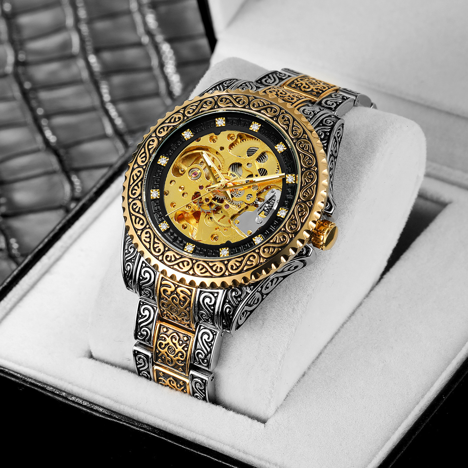 Men's fashion and leisure hollow-out retro carved automatic mechanical watch
