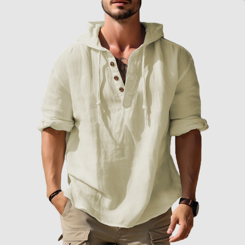 Men's hooded shirt solid color sleeve long sleeve shirt