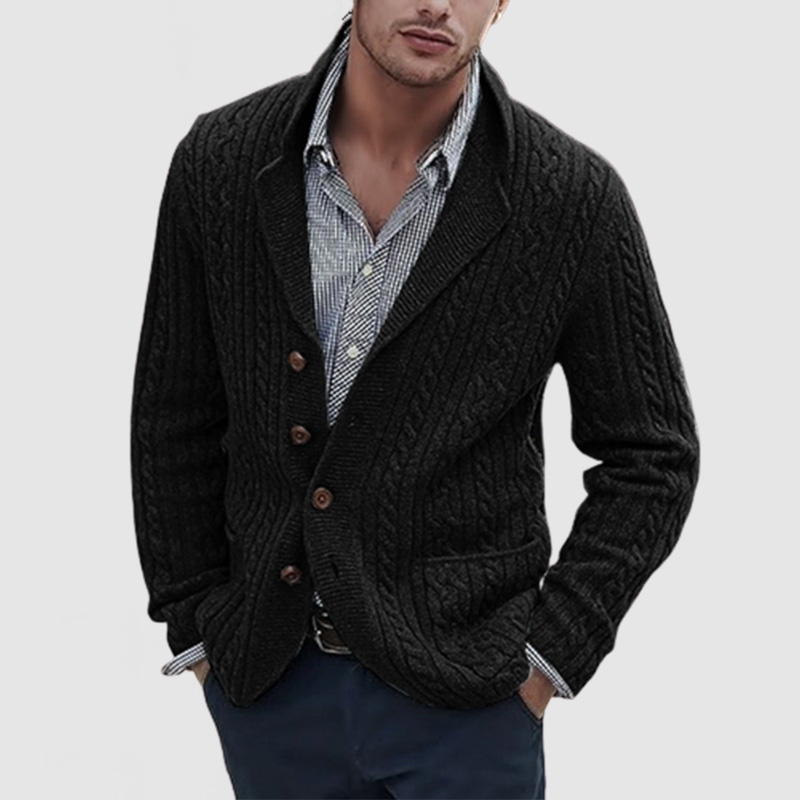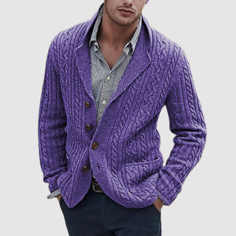 Men's Lapel Long Sleeve Single Breasted Pocket Knit Cardigan