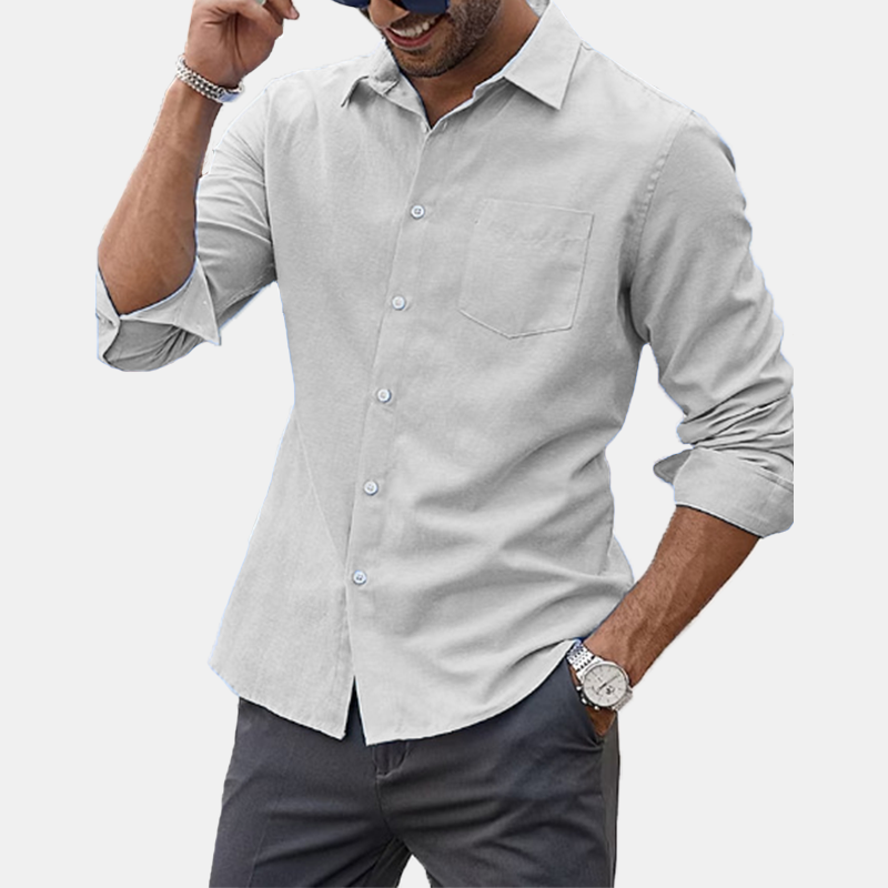 Men's lapel long sleeve solid color shirt