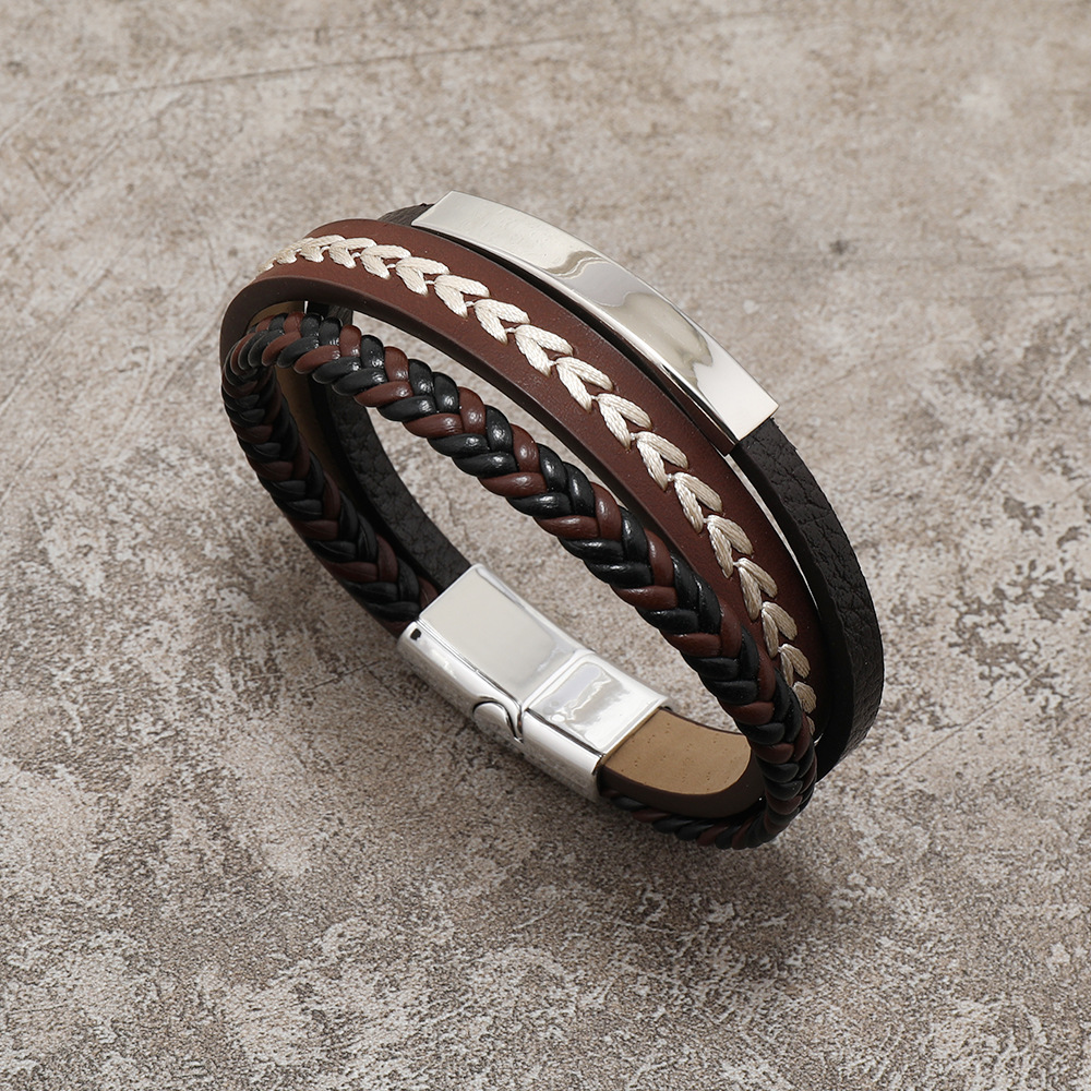 Men's leather bracelet alloy magnetic buckle minimalist bracelet