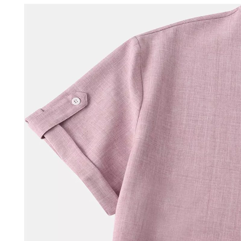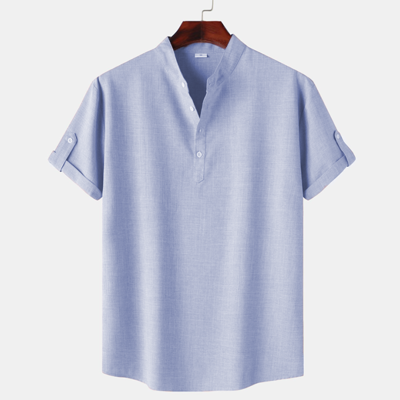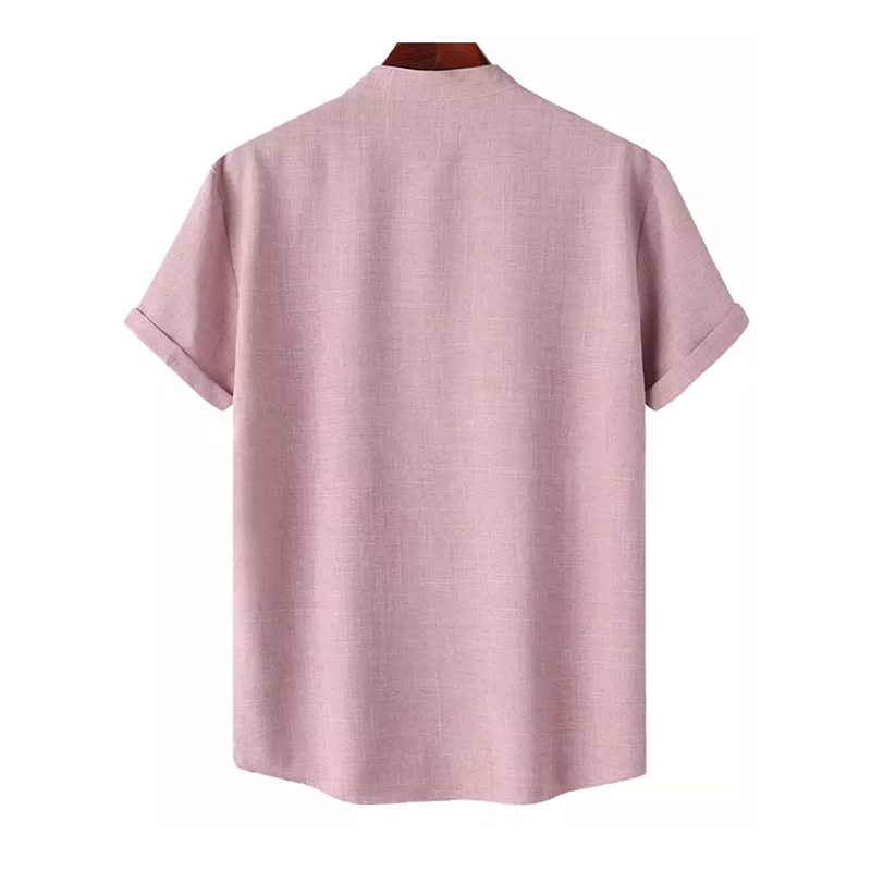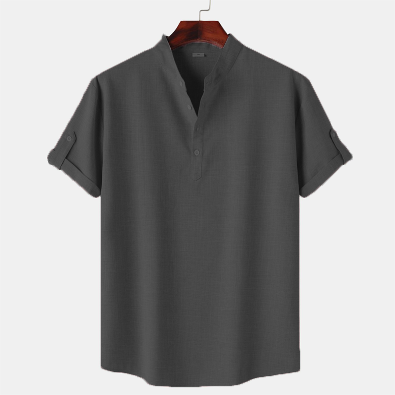Men's Premium Linen Cotton Henley Shirt Casual Short Sleeve T Shirt