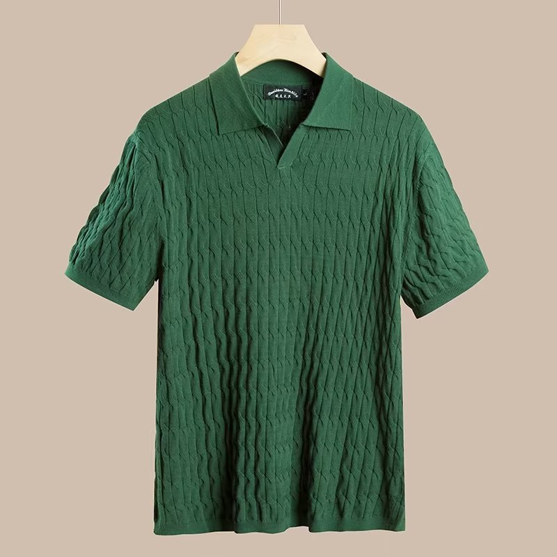 Men's Short Sleeve Lapel Pullover Knit Polo Shirt