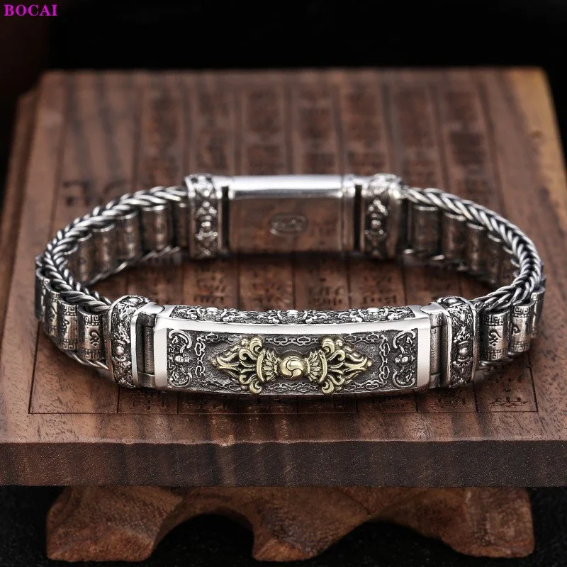 Silver Six Character Truth Vajra Pestle Rotating Drum Hand Bracelet
