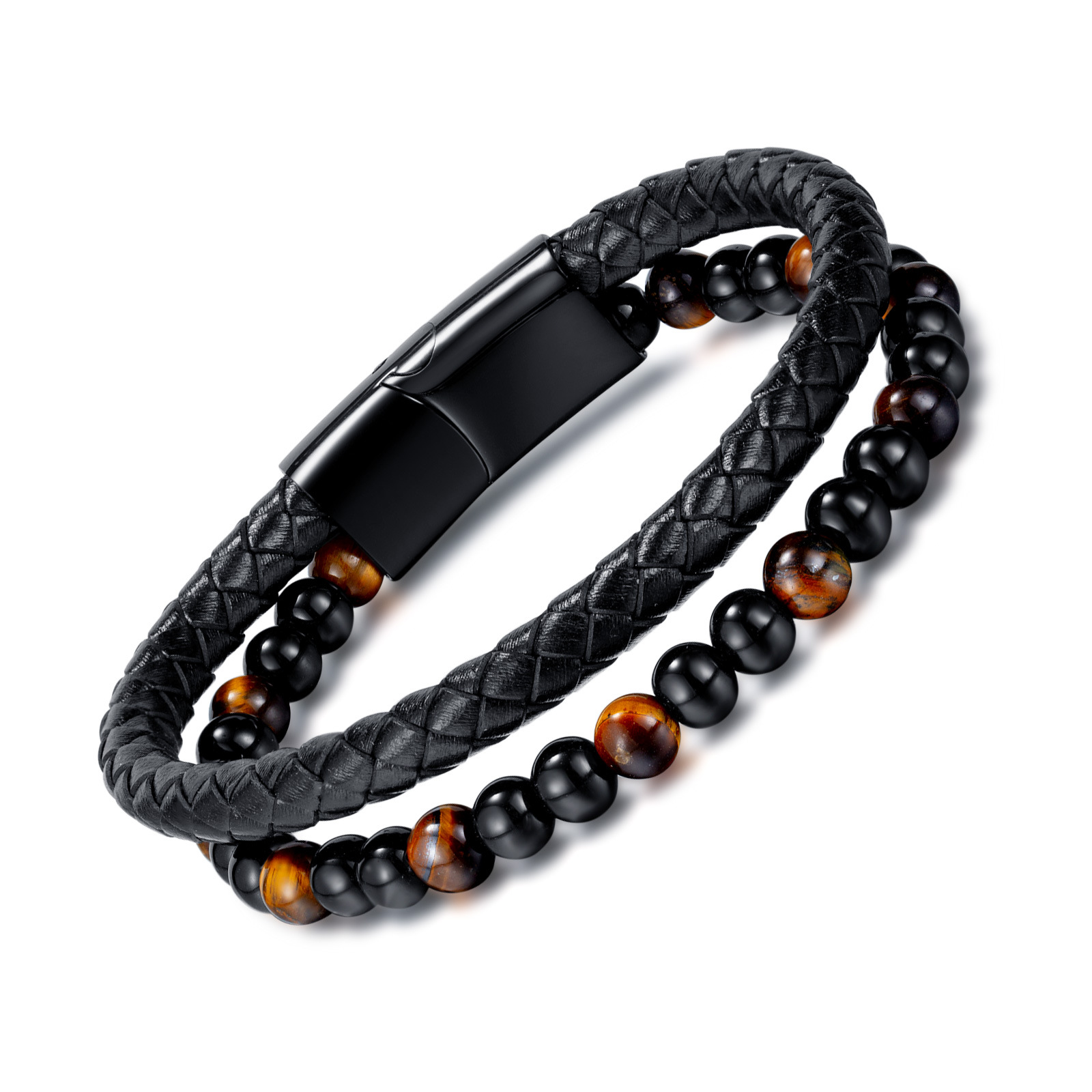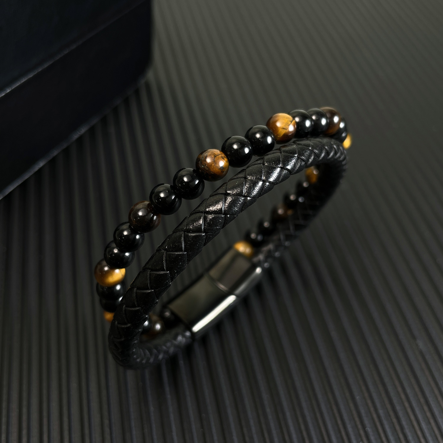 Summer Men's Tiger Eye Stone Bracelet Handwoven Leather Bracelet